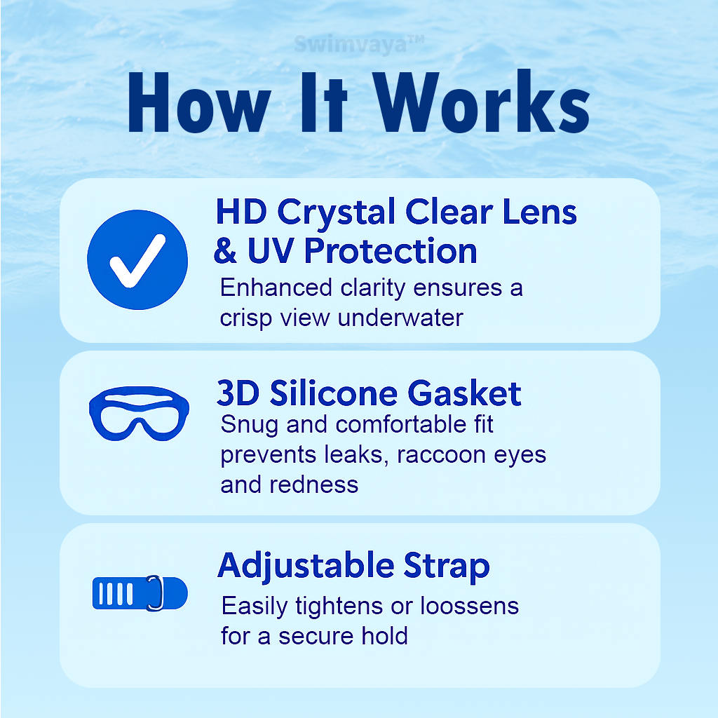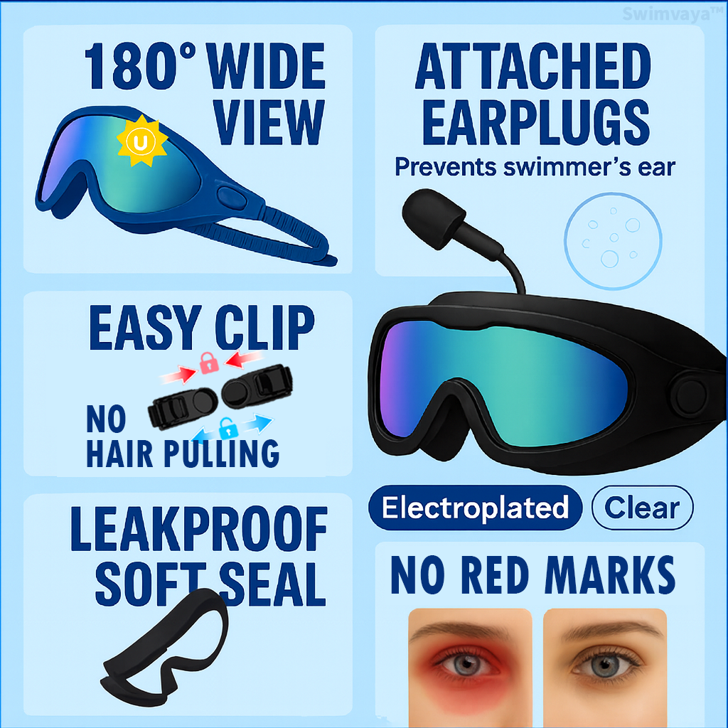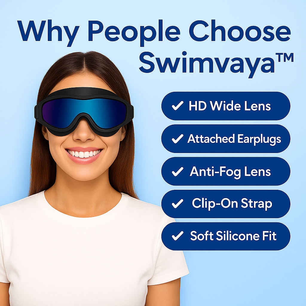 Tired of goggles that fog up, leak, or pinch your skin? Most goggles sacrifice comfort for function, or style for durability. Swimvaya™ was designed to fix it all, with HD clarity, UV protection, leakproof comfort, and built-in earplugs.