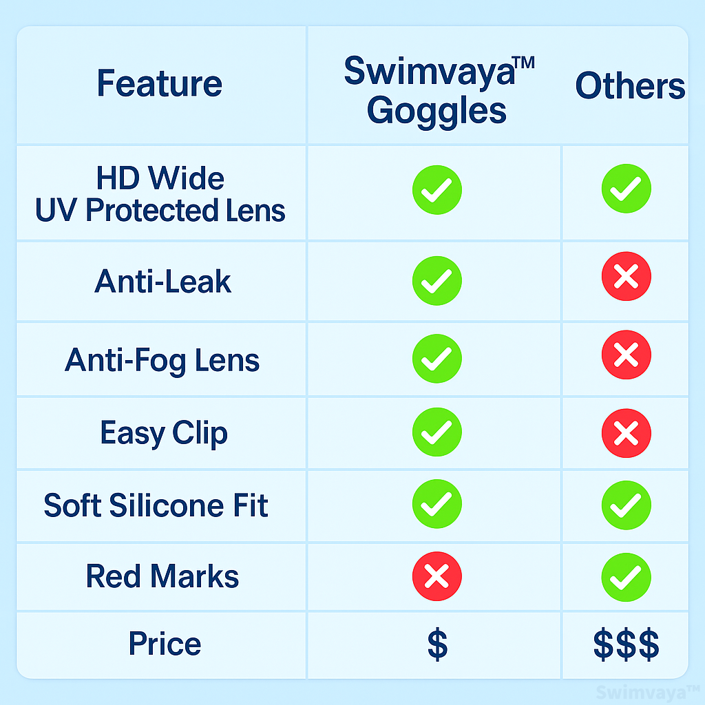 Most goggles compromise on comfort, clarity, or convenience. Swimvaya™ combines thoughtful design and premium features to deliver a better swim experience for all.